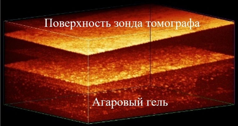 Изображения (слева) кремниевых наночастиц, полученных методом лазерной фрагментации в воде, и (справа) фантома на основе агарового геля, имитирующего биологическую ткань, с внедренными кремниевыми наночастицами, полученными методом лазерной абляции в жидком азоте и позволяющими визуализировать структурные неоднородности методом оптической когерентной томографии.