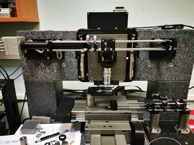 программно-аппаратный комплекс для сверхбыстрого оптического считывания на основе трансляторов Aerotech, обеспечивающих позиционирование микро- и наноструктурированных носителей информации в пространстве с точностью до 200 нм и скоростями до 30 см/с, цифровой высокоскоростной (2000 кадров в секунду) видеокамеры машинного зрения, непрерывного и наносекундного лазеров.